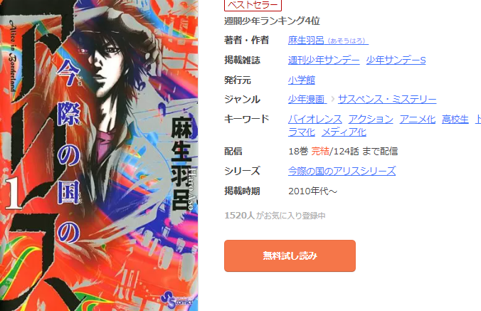 | 【今際の国のアリス】をお得に読めるサービス | ||