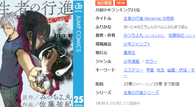 2021年1月現在、【生者の行進 Revenge分冊版】の単行本は『全巻無料では読めません』でした。