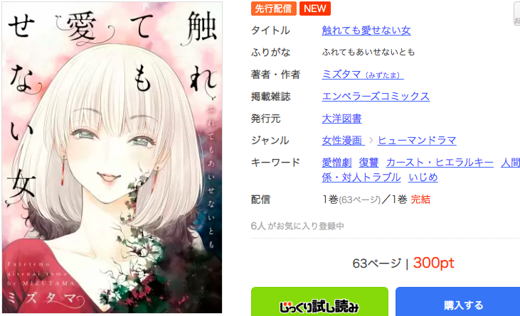2020年12月現在、【触れても愛せない女】の単行本は『全巻無料では読めません』でした。