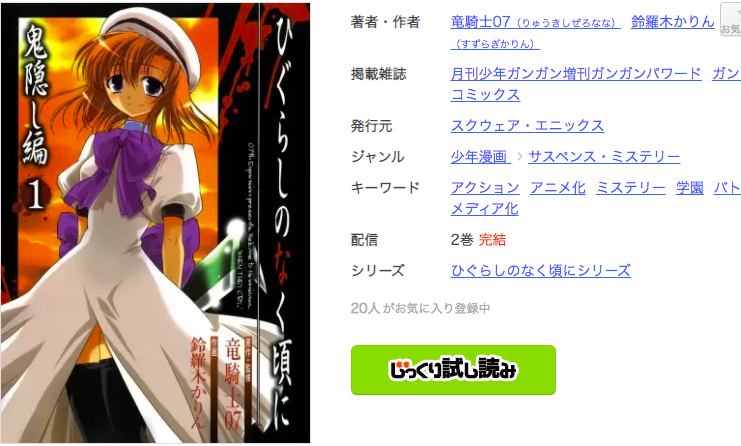 【ひぐらしのなく頃に解 鬼隠し編】をお得に読めるサービス