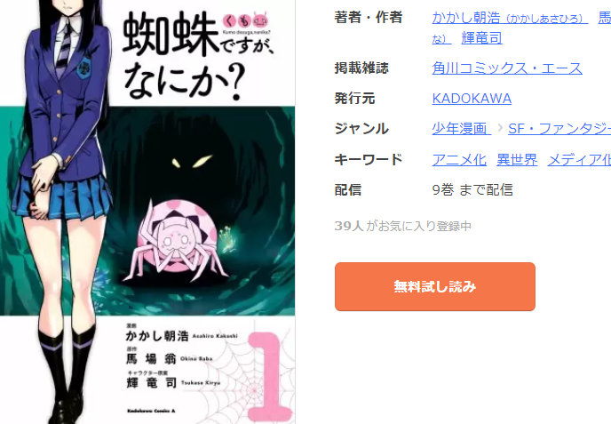 以上、【蜘蛛ですが、なにか?】をお得に読む方法や無料で読む方法をご紹介しました。