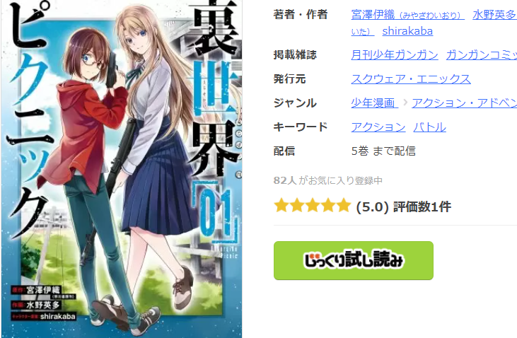 | 【裏世界ピクニック】を無料で読めるサービス比較表 | |||